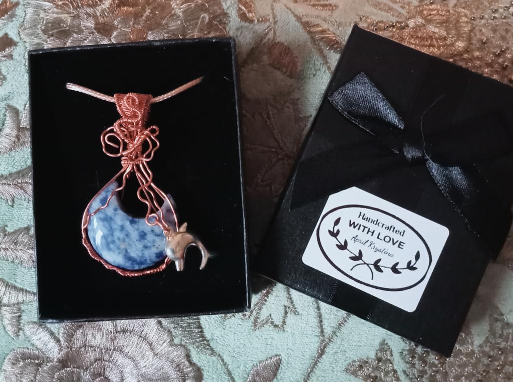 Handcrafted copper wire wrapped healing Sodalite Crystal pendant with Dolphin charm.